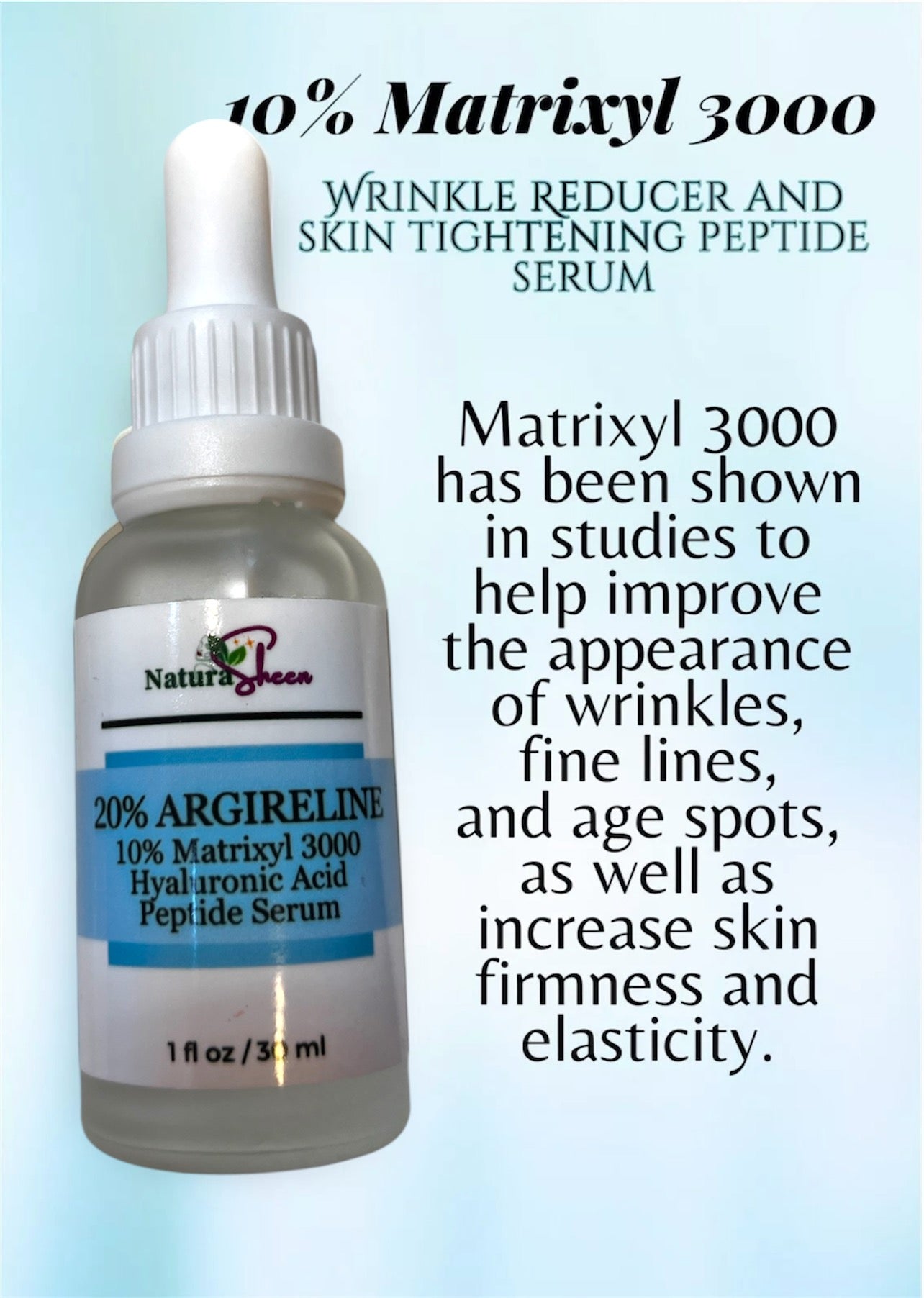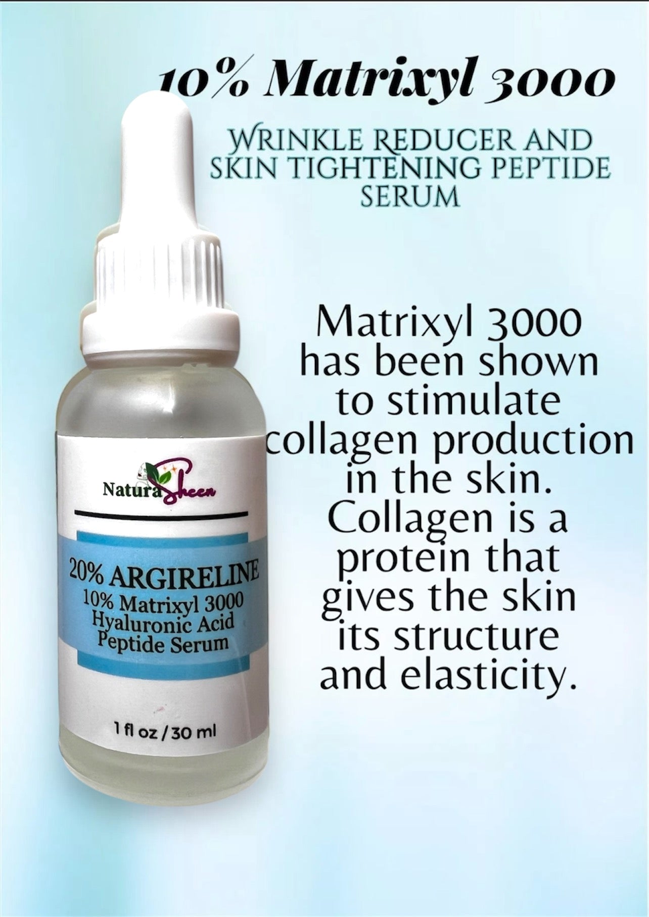 20% Argireline+ Matrixyl 3000 + Hyaluronic Acid. WRINKLE REDUCER AND SKIN TIGHTENING PEPTIDE SERUM