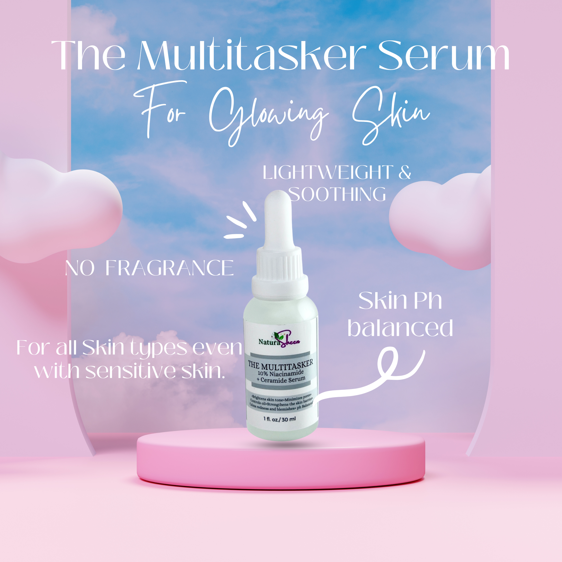 THE MULTITASKER 10% Niacinamide + Ceramide Serum. Brighten hyperpigmentation, helps clear acne, Pore Minimizer, reduces redness or rosacea, reduces fine lines